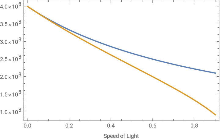 to compare the two formulas symbolically for low speeds to expose how they differ in the factor of the (v/c)^2 term: