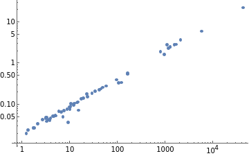 The fact that it's close to a straight line implies a power law relationship.