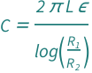 ![Copy to Clipboard QuantityVariable["C", "ElectricCapacitance"] == (2*Pi*QuantityVariable["L", "Length"]*QuantityVariable["ε", "ElectricPermittivity"])/Log[QuantityVariable[Subscript["R", "1"], "Radius"]/QuantityVariable[Subscript["R", "2"], "Radius"]]](https://www.wolframcloud.com/objects/resourcesystem/marketplacestorage/resources/da8/da89ab41-cb17-4b9c-8a9e-01c37279815a/Webpage/FormulaImage.png)