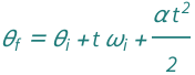 ![Copy to Clipboard QuantityVariable[Subscript["θ", "f"], "Angle"] == (QuantityVariable["t", "Time"]^2*QuantityVariable["α", "AngularAcceleration"])/2 + QuantityVariable[Subscript["θ", "i"], "Angle"] + QuantityVariable["t", "Time"]*QuantityVariable[Subscript["ω", "i"], "AngularVelocity"]](https://www.wolframcloud.com/objects/resourcesystem/marketplacestorage/resources/71c/71cb3143-c278-4524-ab97-fe3115a16216/Webpage/FormulaImage.png)