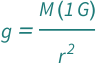 ![Copy to Clipboard QuantityVariable["g", "GravitationalAcceleration"] == (Quantity[1, "GravitationalConstant"]*QuantityVariable["M", "Mass"])/QuantityVariable["r", "Radius"]^2](https://www.wolframcloud.com/objects/resourcesystem/marketplacestorage/resources/2dd/2dd18aac-0469-4065-9c30-ff616a6c5cd5/Webpage/FormulaImage.png)