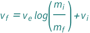 The final speed equals the initial speed plus the effective exhaust velocity times the natural logarithm of the ratio of the initial mass of the rocket to the final mass.