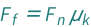 The friction force equals the normal force times the kinetic friction coefficient.