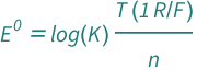 The standard cell potential equals the logarithm of the equilibrium constant times the product of the molar gas constant and temperature divided by the product of the number of electrons transferred and the Faraday constant.
