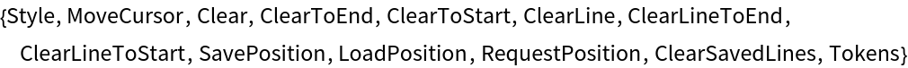 | "ClearLineToEnd" | clear from cursor to end of the line |