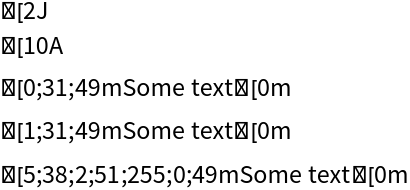 ResourceFunction["ANSITools"][token] generates ANSI escape codes corresponding to token. | |