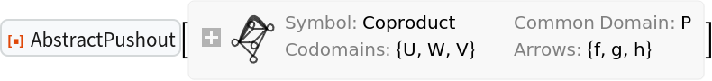 Abstract pushouts can also be constructed directly from an association of morphisms with a common domain (i.e. a generalized span) and a list of names of injection morphisms (plus composition and identity symbols):