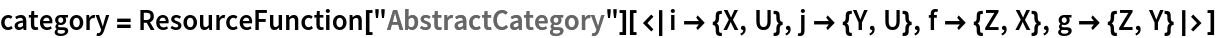 Construct a more complicated abstract category consisting of additional morphisms from X and Y to some further common object V (such that these new morphisms also satisfy the requisite commutativity conditions):