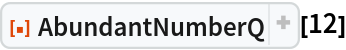ResourceFunction["AbundantNumberQ"][n] checks whether the sum of the proper divisors of the integer n is greater than n. |