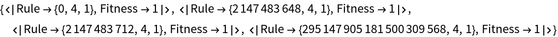 | "Rule" -> n | randomly mutate n bits in the rule |