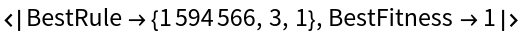 | {"BestRule", "BestFitness"} | (default) returns an Association with best rule and fitness found so far |