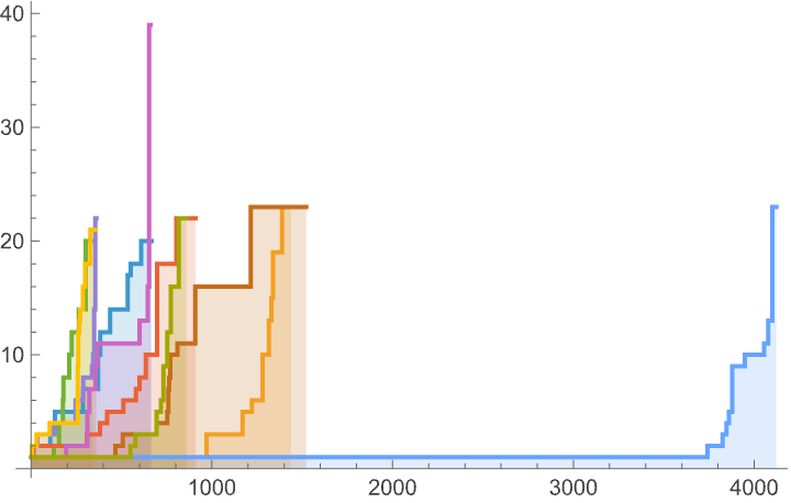 ResourceFunction["AdaptiveCellularAutomaton"][evospec,"BreakthroughStates"] returns only the breakthrough iterations in the adaptive evolution. | |
