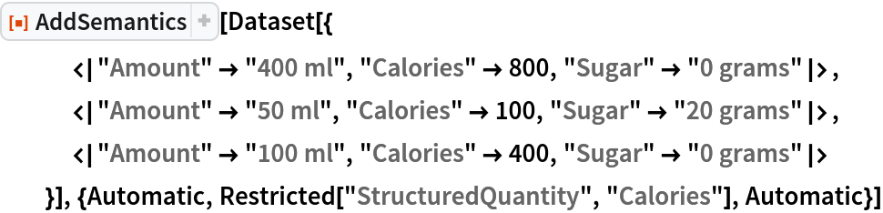 ResourceFunction["AddSemantics"][data] automatically and semantically interprets the structured dataset data. | |