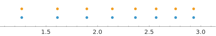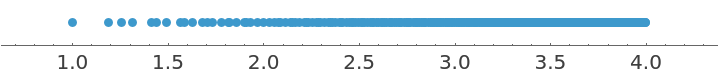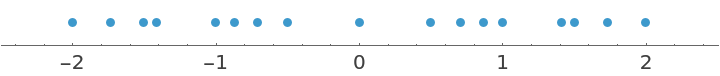 The algebraic numbers thus generated can often be in a great number, with a tendency to accumulate towards certain points. To avoid these features, a further fourth argument d can be optionally provided to require a minimum (absolute value) difference between successive algebraics, that is a lower bound for all the steps. This truncation process typically leads to a nearly uniform distribution of numeric values.