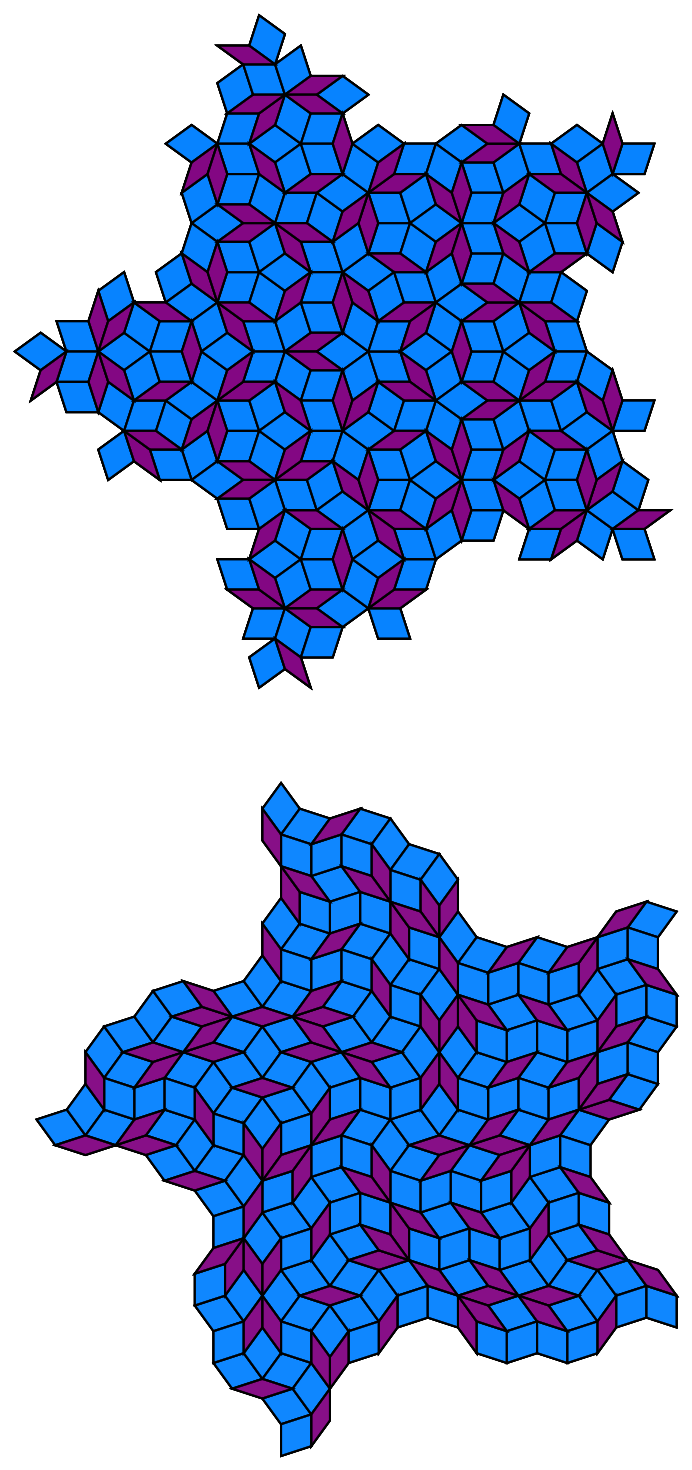 Use numeric approximation to show and compare growth with alternate starting positions for the Penrose rhombs and the Godrèche-Lançon binary tiling systems: