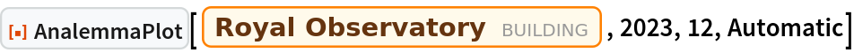 Plots the 2023 analemma at the Royal Observatory in Greenwich at noon: