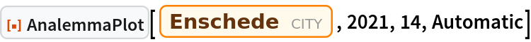 Plot the 2021 analemma curve at 14:00 in the local timezone: