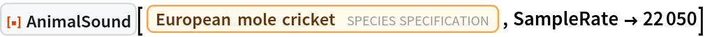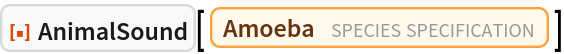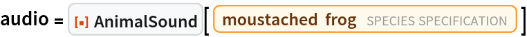 ResourceFunction["AnimalSound"][species] generates an Audio object associated with a specified species entity. | |