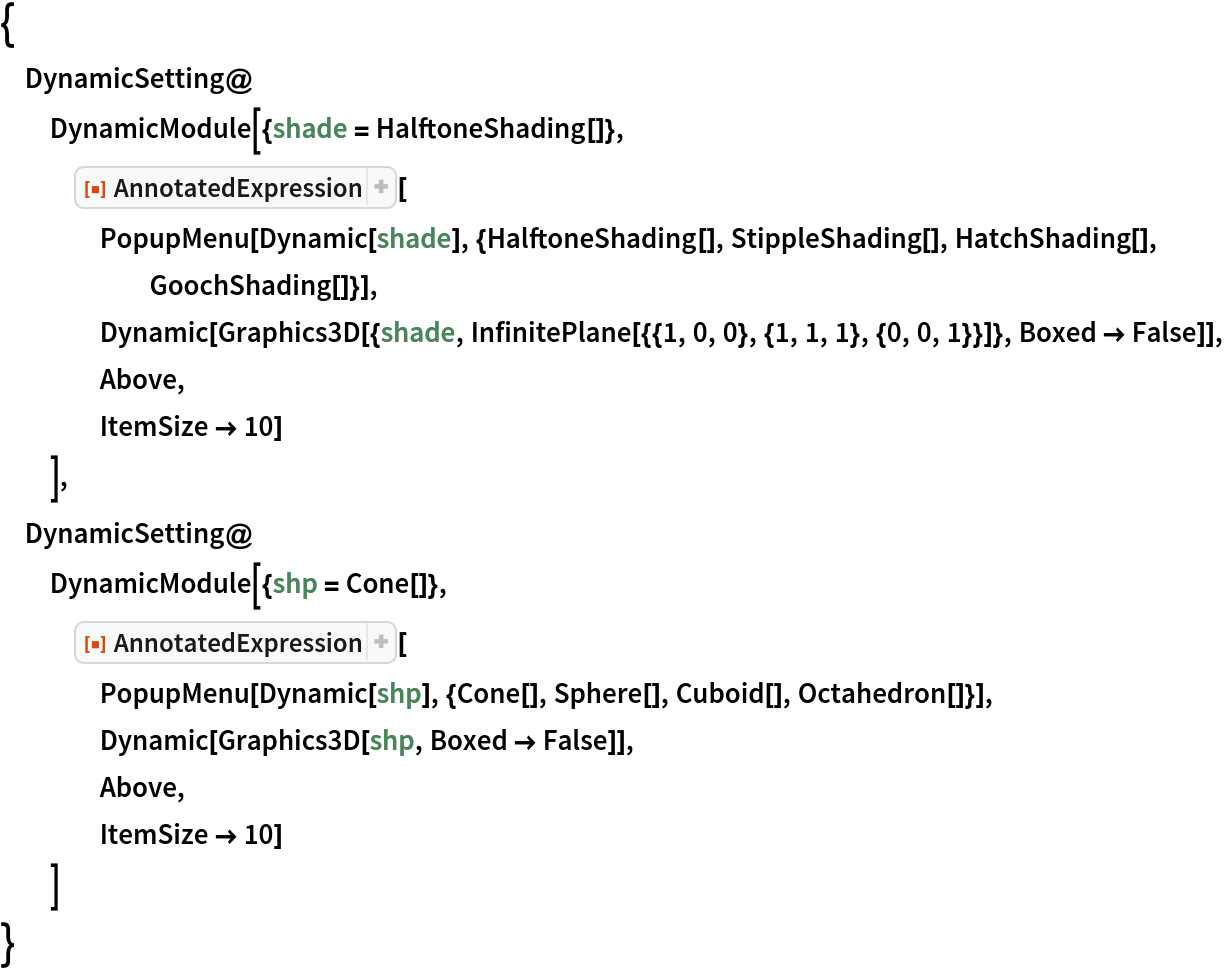 Create dynamic annotations to view graphics primitives inline before evaluating the plot: