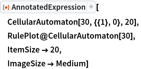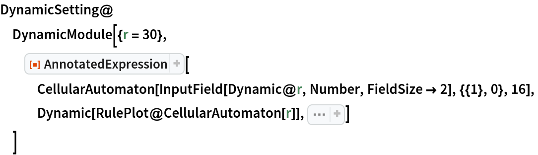 Create a dynamic annotation to view the RulePlot of CellularAutomaton inline before evaluating the simulation: