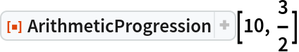 ResourceFunction["ArithmeticProgression"][n,d] produces an arithmetic progression of n terms starting at d and incrementing by d. | |