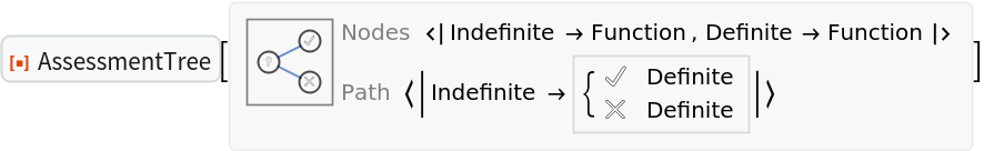 The following option values can be provided for the ResourceFunction["AssessmentTree"]: