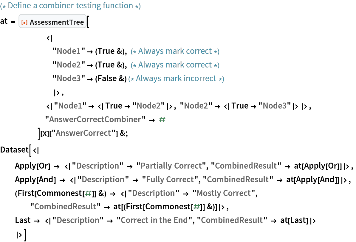 | "AnswerCorrectCombiner" | Apply[Or] | function to combine node "AnswerCorrect" values |