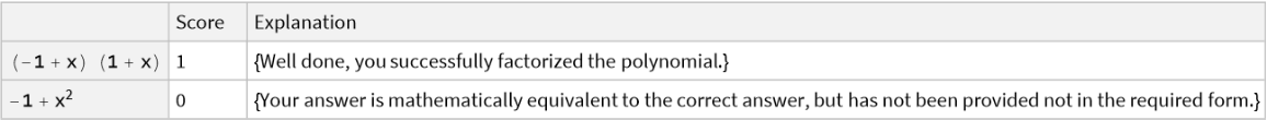 path which returns an explanation if the answer is mathematically equivalent to the correct answer, but has not been provided in the required form.