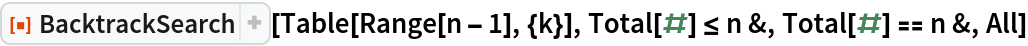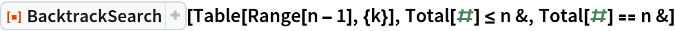 Use backtracking to find a way to partition an integer n into k smaller integers: