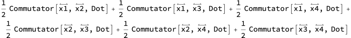 Show a few terms of Baker-Campbell-Hausdorff formula 𝒵=Log(ⅇX1ⅇX2…ⅇXn) with three non-commutative operators Xj: