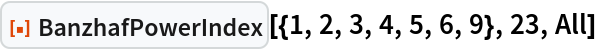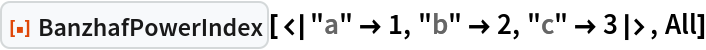 Use All to obtain an Association containing information on the power index and the number of votes needed to win (the "quota"):