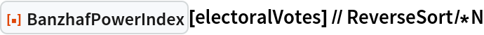 Compute the power of each state in the United States electoral college assuming that electors from each state vote as a block: