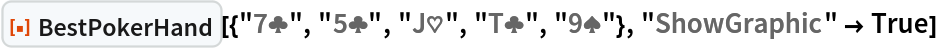"BestPokerHand"][{"7\[ClubSuit]", "5\[ClubSuit]", "J\[HeartSuit]", "T\[ClubSuit]", "9\[SpadeSuit]"}, "ShowGraphic" -> True]