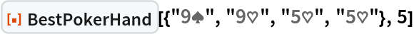 "BestPokerHand"][{"9\[SpadeSuit]", "9\[HeartSuit]", "5\[HeartSuit]", "5\[HeartSuit]"}, 5]