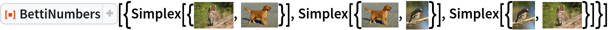 Use the resource function HypergraphPlot to view the corresponding hypergraph to see that these correspond to three connected components, one "hole" and no "voids":
