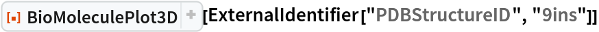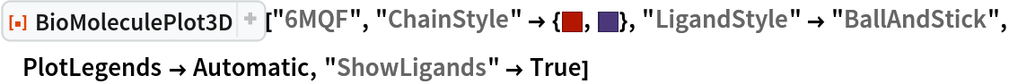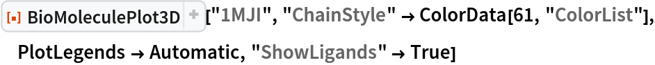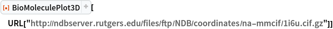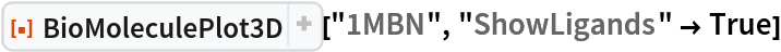 ResourceFunction["BioMoleculePlot3D"][biomol] creates a three-dimensional visualization of the biomolecule represented by biomol. |