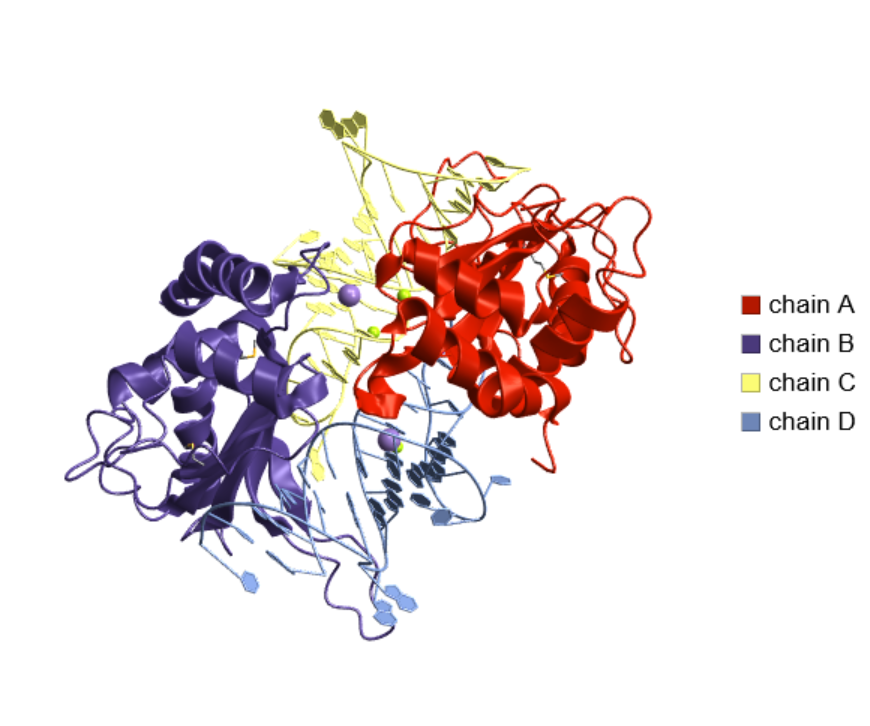 Visualize the structure of the anticancer agent L-asparaginase from Escherichia coli, which has multiple chains: