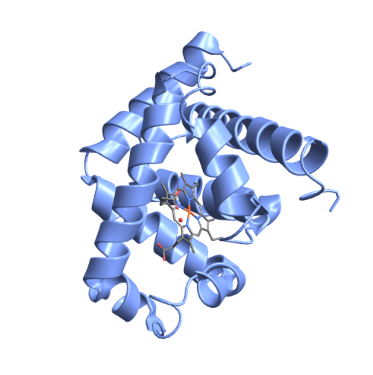 Show the heme ligand in myoglobin: