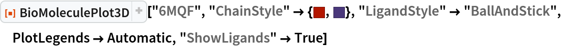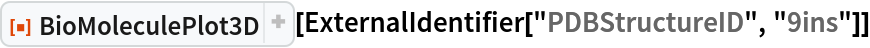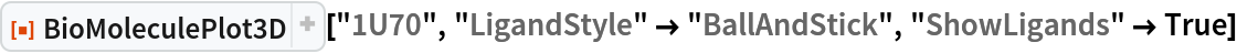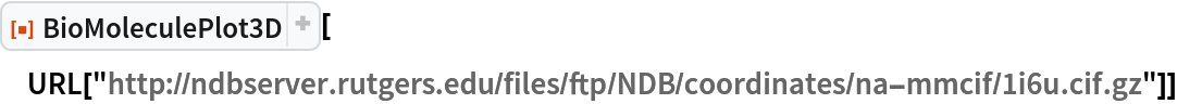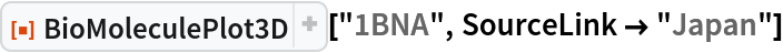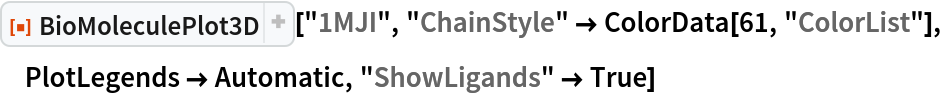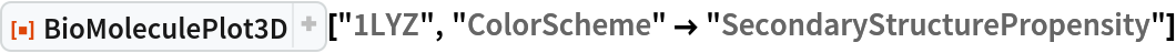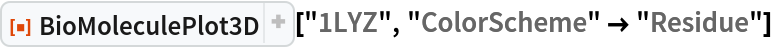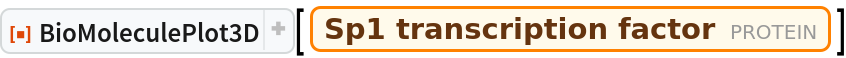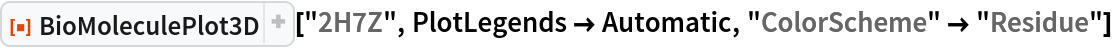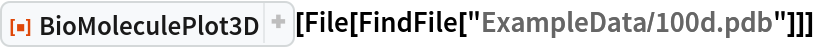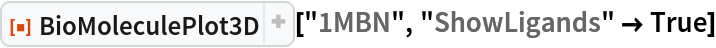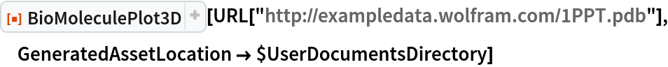 ResourceFunction["BioMoleculePlot3D"][biomol] creates a three-dimensional visualization of the biomolecule represented by biomol. |