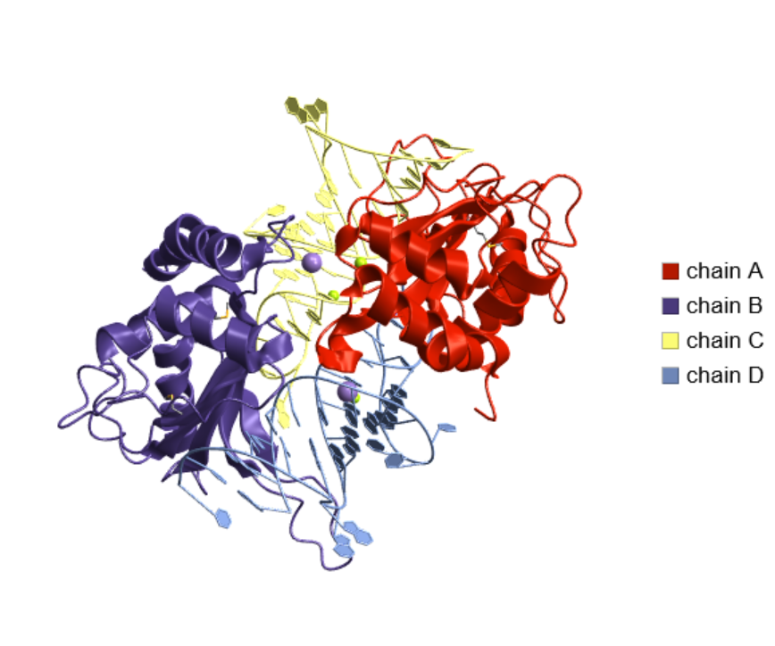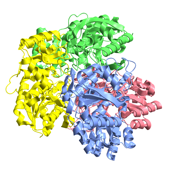 Visualize the structure of the anticancer agent L-asparaginase from Escherichia coli, which has multiple chains: