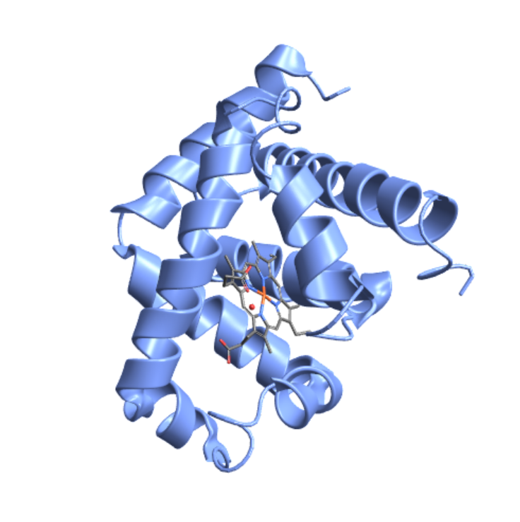 Show the heme ligand in myoglobin: