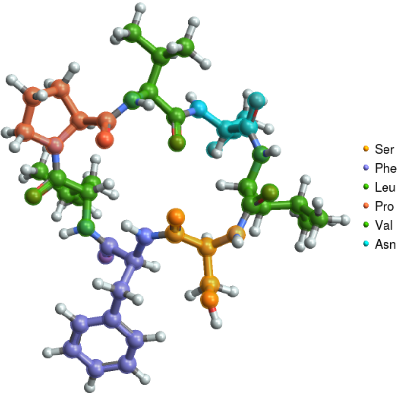 Visualize the structure of the circular peptide evolidine: