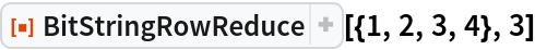 ResourceFunction["BitStringRowReduce"][{n1,n2,…},ncols] treats the integers ni as vectors of zeros and ones, each having ncols bits, and does row reduction using mod 2 arithmetic. |
