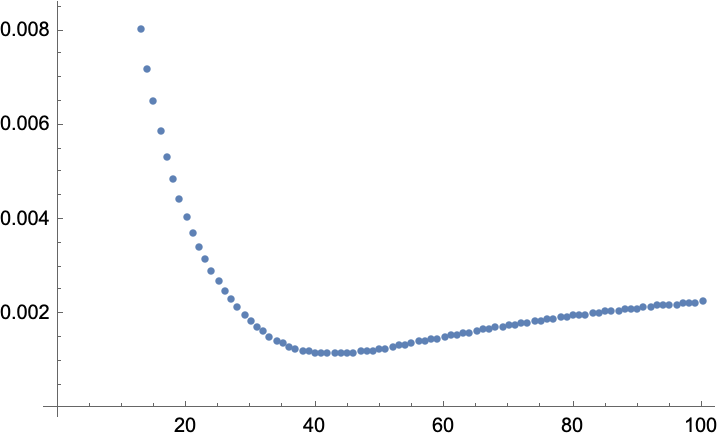 Which proves Miller and Fredkin hypothesis wrong of circularity monotonically decreasing to zero. They've only computed this curve up-to 20 boxes, but the minimum is at 43.