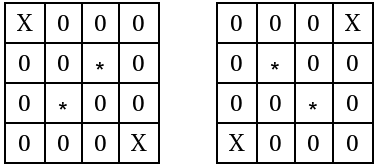 -The X's are the knight's move positions for the pairs of cells represented by asterisks.