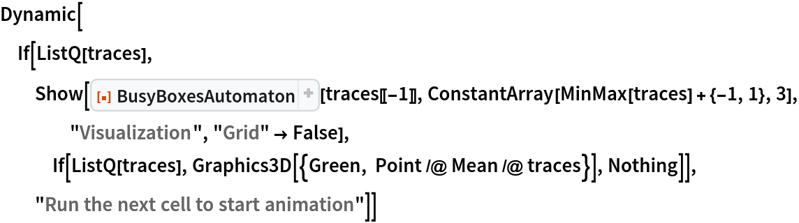 ResourceFunction["BusyBoxesAutomaton"][state,"Visualization"] return a 3D visualization for a state. | |