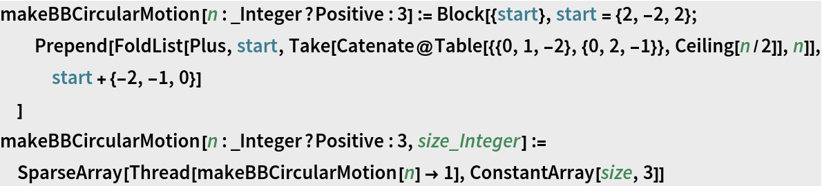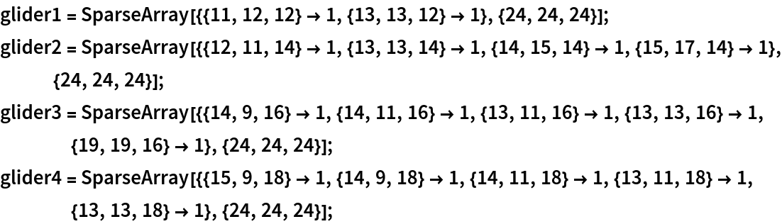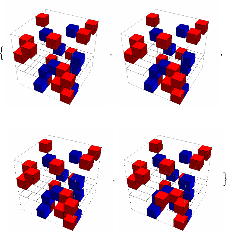 ResourceFunction["BusyBoxesAutomaton"][init] runs the BusyBoxes cellular automaton rule starting from an initial 3D state init. | |