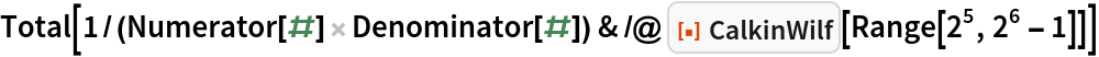 Find the Total of the terms of the ContinuedFraction for level 5 of the Calkin–Wilf tree: