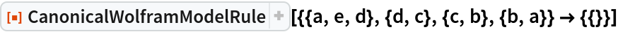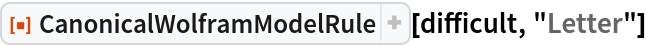 ResourceFunction["CanonicalWolframModelRule"][rule,"Letter"] produces a canonical letter form of the specified Wolfram model rule. |