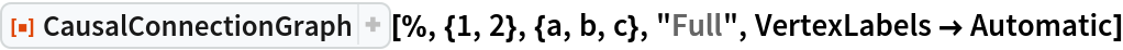 ResourceFunction["CausalConnectionGraph"][cg,{vi1,…},{vf1,…}] generates the causal connection graph from the causal graph cg by considering causally equivalent regions among the event nodes vik, as determined by looking at the event nodes vfk. | |
